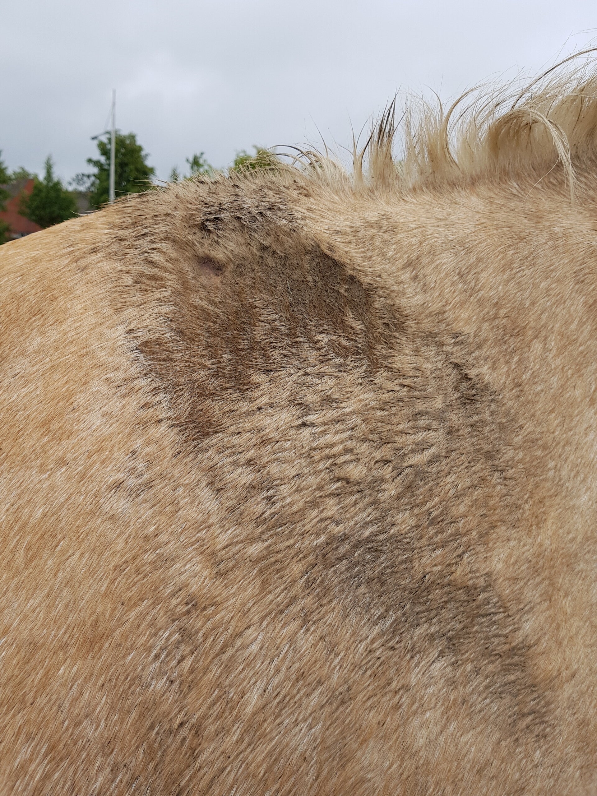 Hieronder zie je mooi het verschil binnen een totaal van 3 weken hoe snel dit paard is hersteld.